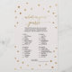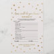 This gold polka dot "how well do you know the bride" game is perfect for an elegant bridal shower. The front of the game card features "how well do you know the bride", and the back of the card features "what's in your purse". The simple design features chic gold confetti on a creamy champagne background with beautiful faux gold foil calligraphy. Personalise the front of the card with the brides name and bridal shower date.