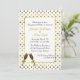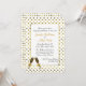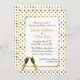 Chic Wedding Engagement party celebration invitation done in a gold tone on white polka dot pattern background, with a gold tone framed white text area. Graphics of two filled champagne glasses decorate the bottom and back of the invitation. Personalise all the text for your special event.