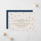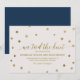 These gold polka dots elopement announcement cards have a beautiful elegant design. The simple design features chic gold confetti on a creamy champagne background with beautiful faux gold foil calligraphy and a navy blue backing. The card reads "We Tied The Knot!".
