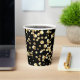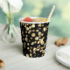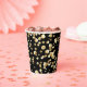 Gold polka dots on a black background . paper plat cups