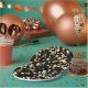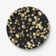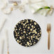 Gold polka dots on a black background . paper plate