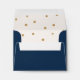 These gold polka dots printed address RSVP envelopes are perfect for an elegant wedding. The simple design features chic gold confetti on a creamy champagne background with beautiful faux gold foil calligraphy on a navy blue envelope. Personalise with the name of the bride and groom and RSVP address.