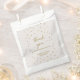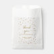 These gold polka dots wedding favour bags are perfect for an elegant wedding. The simple design features chic gold confetti on a creamy champagne background with beautiful faux gold foil calligraphy. Personalise the treat bags with a thank you message, the names of the bride and groom and the wedding date.