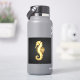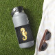 Artistic, polygonal, seahorse of sparkling, gold foil on black background.