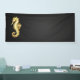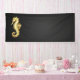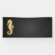Artistic, polygonal, seahorse of sparkling, gold foil on black background.
