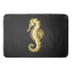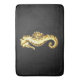 Artistic, polygonal, seahorse of sparkling, gold foil on black background.