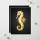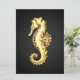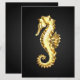 Artistic, polygonal, seahorse of sparkling, gold foil on black background.