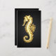 Artistic, polygonal, seahorse of sparkling, gold foil on black background.