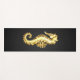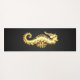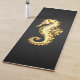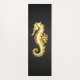 Artistic, polygonal, seahorse of sparkling, gold foil on black background.