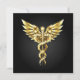 Gold polygonal Caduceus symbols on black isolated background. Low poly symbol of medicine.