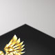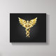 Gold polygonal Caduceus symbols on black isolated background. Low poly symbol of medicine.