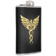 Gold Polygonal Symbol Caduceus Hip Flask