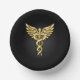 Gold polygonal Caduceus symbols on black isolated background. Low poly symbol of medicine.