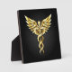 Gold polygonal Caduceus symbols on black isolated background. Low poly symbol of medicine.