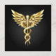 Gold polygonal Caduceus symbols on black isolated background. Low poly symbol of medicine.