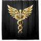 Gold Polygonal Symbol Caduceus Shower Curtain