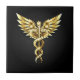 Gold polygonal Caduceus symbols on black isolated background. Low poly symbol of medicine.