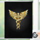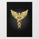 Gold polygonal Caduceus symbols on black isolated background. Low poly symbol of medicine.