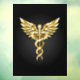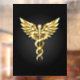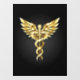 Gold polygonal Caduceus symbols on black isolated background. Low poly symbol of medicine.