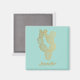 Modern doodle style prickly pear cactus graphic in gold on green blue background. Personalise with name or monogram in gold modern brush stroke font