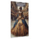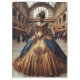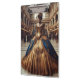 Standing in a vintage grand hall or perhaps a vintage train station, slightly out of place, this Victorian steampunk Gold Lady shines in blue and gold with clockwork gears woven into her elegant fantasy dress on this addition to any home office.