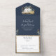 These fall gold glitter pumpkins all-in-one wedding invitations are very compact and cute. Elegant rustic navy blue design features a wedding invitation and a self-addressed RSVP card that guests can mail back to you.