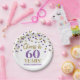Gold Purple Confetti Cheers to 60 Years Birthday Paper Plate