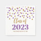 Customisable graduation napkins for class of 2023 with glamourous gold and purple confetti pattern.