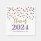 Customisable graduation napkins for class of 2024 with glamourous gold and purple confetti pattern.