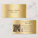 A faux gold looking background. Personalise and add your name, title and contact information. Add your website url/link to the Qr code. With Facebook and Instagram icons. Black text.