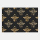 Gold Queen Bees on Black Wrapping Paper Sheet
