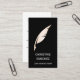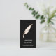 Professional and elegant vertical business card for mobile or public NOTARY AGENT featuring faux gold illustration of a QUILL PEN OR FEATHER PEN with your name and profession over a chic black background. Very classy and impressive