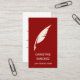 Professional and elegant vertical business card for mobile or public NOTARY AGENT featuring faux gold illustration of a QUILL PEN OR FEATHER PEN with your name and profession over a dark red background. Very classy and impressive