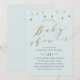 Blue & Gold modern and elegant baby shower invitation design featuring faux gold foil raindrops and calligraphy. Plain blue back side.