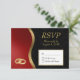 A black red and gold RSVP card. Wedding rings joined together for an anniversary or other occasion.