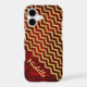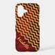 This is an especially pretty case for her, with a bright yellow gold faux glitter chevron pattern placed diagonally across a vivid maroon red gradient grunge background. The bottom third of the case is red with her name in gold. This elegant and glittery case will grab attention! *Please note - the image is printed and contains no actual glitter.