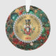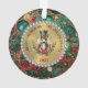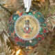 Colourful Christmas nutcracker ornament design with holiday greenery wreath on a gold background. Customisable text, glittery frame.