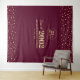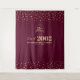 This modern tapestry is perfect for a chic burgundy red and gold colour theme class reunion party. A stylish custom photo backdrop to remember your special day. The design features golden typography " Welcome Back! " with confetti background. You can personalise the graduate year, school name, and event date.