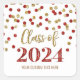 Custom name class of 2024 graduation stickers with gold and red confetti pattern with modern lettered style text.