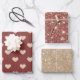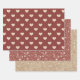 Gold Red Cream Glitter Hearts Valentine's Day Wrapping Paper Sheet