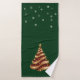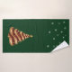 Beautiful bath towel set with gold and red glitter, artistic, abstract, Christmas tree, decorated with pretty gold stars. Snowflakes are added to the Christmas, holiday, bright green background. Change background color to your favorite.
