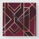 Gold,red,modern, art deco pattern,geometric,elegan square wall clock