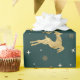 Prancing and dancing reindeer among stylised Christmas trees in a faux gold foil affect are sprinkled with snowflakes and stars in this elegant wrapping paper design. Choose any background colour to replace the deep green we've chosen as an example, or leave as is.