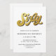 Gold Retro Script Black White 60th Birthday Party Invitation