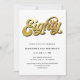 Gold Retro Script Black White 80th Birthday Party Invitation
