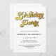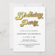 Gold Retro Script Black & White Birthday Party Invitation