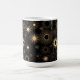 Retro stylised suns with different spokes and rays styles in light and dark gold tones on a black background.