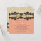 Gold Ribbon Damask Lace Coral Wedding Invite