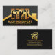 Cover features a gold rooftop with four gold vertical tabs with handyman tools. The tools represent some of the service that you might offer. Below the design lies the business name "ROOFING EXPERT" which you can change alongside the contact details.