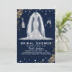 Gold Rose Diamond Wedding Dress Bridal Shower Blue Invitation
